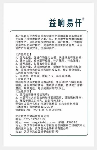 華農(nóng)益菌糖起源于2005年,主要成份為殼寡糖、枯草芽孢桿菌及發(fā)酵代謝產(chǎn)物(主要為聚糖),其中殼寡糖由華中農(nóng)業(yè)大學梁運祥教授團隊在南湖邊分離的高活性殼聚糖酶菌Mitsuaria sp.141,以此為核心技術(shù)分解出高純度,高水溶,特定聚合度的寡糖。該項技術(shù)在全國乃至全球處于領(lǐng)先地位。產(chǎn)品安全、環(huán)保、******。
